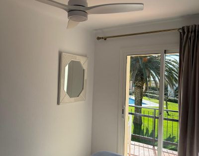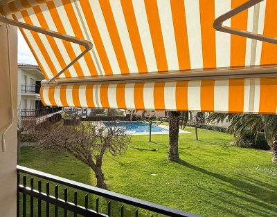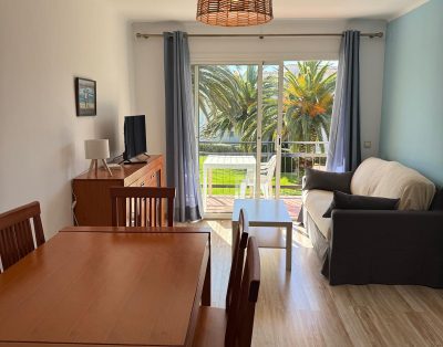 Apartamento en un primer piso sin ascensor. Terraza que da al jardín y a la piscina donde disfrutar de desayunos o comidas al sol. Salón con sofá cama para 1 persona, TV y salida directa a la terraza.