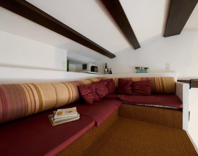 El acogedor salón-comedor está equipado con un cómodo sofá, televisión y una estufa de pellets, creando un ambiente cálido y agradable en los periodos de menos calor. La cocina abierta, de diseño moderno, cuenta con placa de inducción y electrodomésticos totalmente nuevos, además de todo el menaje necesario para cocinar con total comodidad durante tu estancia.