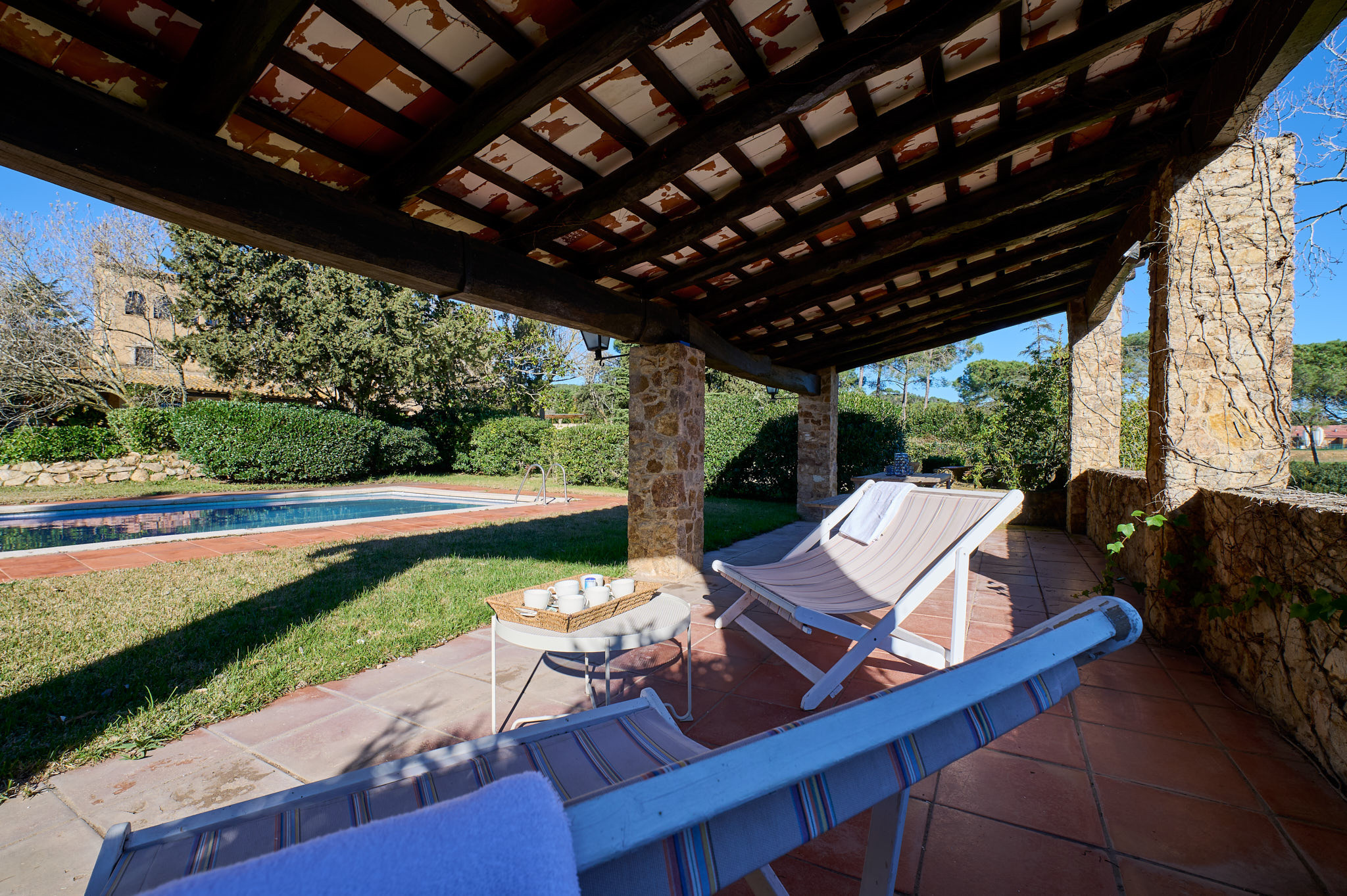 The villa in Mont-ras has 4 bedroom(s) and capacity for 8 people. Accommodation of 248 m². It has garden, garden furniture, fenced plot, terrace, washing machine, dryer, barbecue, fireplace, iron, internet access (wifi), children’s area, central heating, private pool, covered parking in the same building, 5 fans, mosquito nets throughout the accommodation, 1 Television.The independent kitchen, gas-powered, is equipped with fridge, microwave, oven, freezer, dishwasher, crockery/cutlery, utensils/kitchen, coffee maker, fryer, toaster, water heater and juicer.