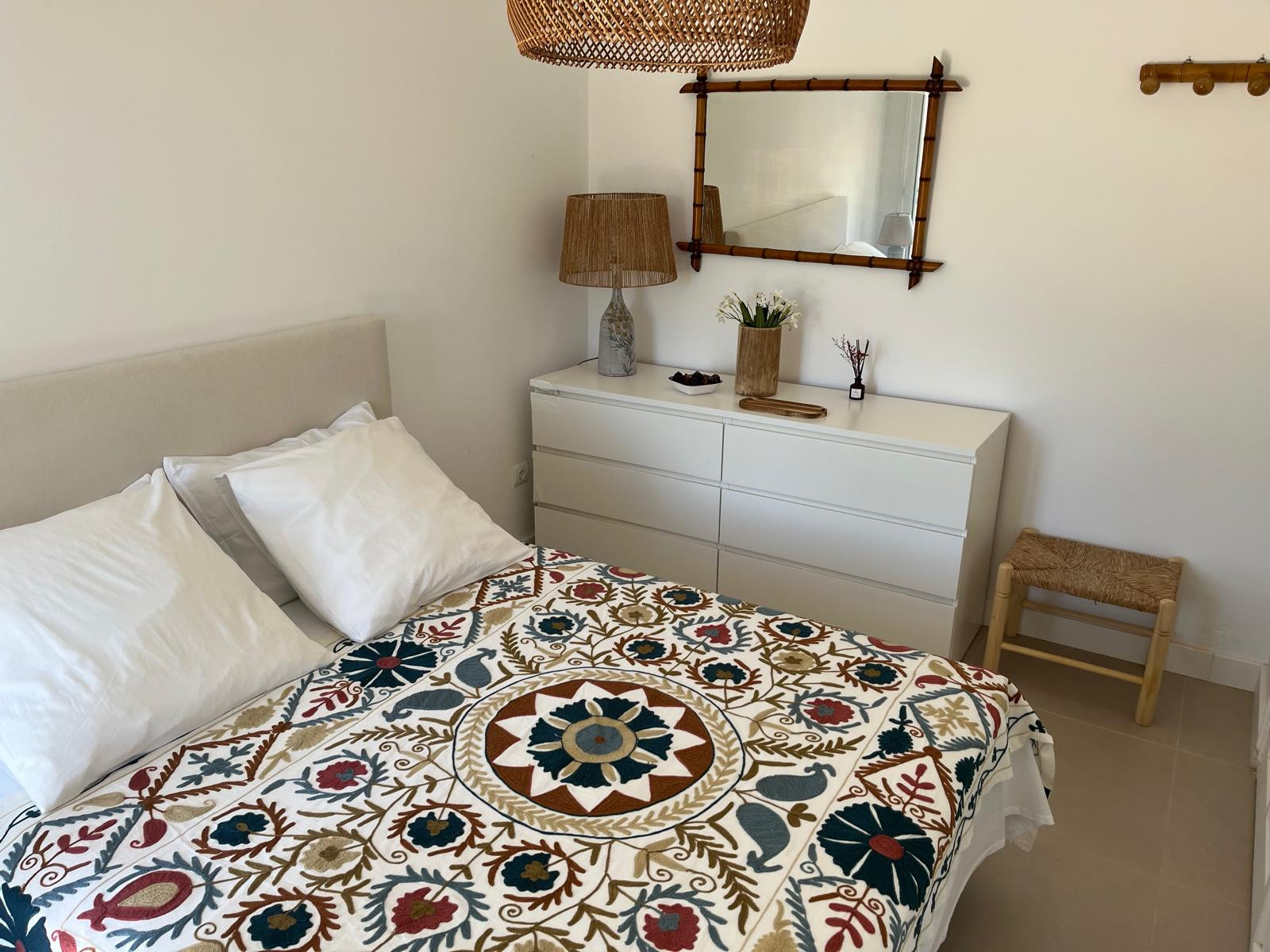 En la planta baja, un segundo espacio de noche acoge tres hermosas habitaciones: dos habitaciones con cama doble (150 cm) y una habitación con dos camas individuales (90 cm), perfectas para niños o amigos. Un cuarto de baño con ducha y WC.