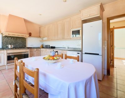 Zona interior de 140 m2 con un amplio salón-comedor con tv y salida directa a la terraza. Cocina totalmente equipada con todo lo necesario para cocinar como: cubiertos, sartenes, nevera, microondas, tostadora, horno, lavadora y lavavajillas.