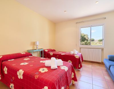 Consta de 3 habitaciones de matrimonio (135x190cm), 1 habitación con dos camas individuales (90x190cm), 1 habitación con una cama individual (90x190cm), 1 baño con bañera y 1 baño con ducha.
