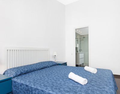 El apartamento incluye 3 habitaciones dobles (5 camas individuales de 90x190cm + 1 sofá-cama), 1 cuarto de baño con una pequeña bañera, salón-comedor con TV.